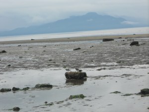 On this particular day, the Baird’s were quite cooperative, and we watched them for some time before moving on. The most impressive bird of the day was the Pacific Golden Plover pair, camouflaged so perfectly among the barnacles in a way that only years of evolution could attain, that we could barely find them after they landed. Upon arrival to barnacle habitat, we flushed the plovers, who flew so far it seemed I have missed my chance to see them. I was skeptical of my fellow birder’s assurance that they would return, but after cruising out over Icy Strait, they did indeed land in this habitat and instantly blend in with such ease that a predator would be fortunate to find them. I think shorebirds might take home the blue ribbon for camouflage. We nearly stepped on two Black Turnstones earlier in the day they were so hidden.