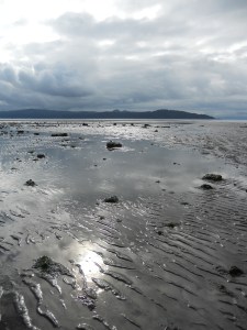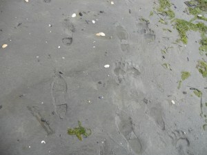 Further down the beach, we watched a black bear plodding along the upper beach by the forest’s edge. Bear have such a distinct walk; you can almost feel the sand being compressed under the pads of their feet with each step. I had never noticed how their back feet flop from heel to toe. We walked further up the beach to allow it time and space to continue on its way without our interrupting it. Later in the afternoon, we walked beside the bear’s tracks. They looked almost human, interwoven with interspersed wolf tracks. My friend commented how inspiring it is to live in a place where you can follow the paths of such wild creatures, never knowing when you might happen upon one. On multiple occasions when he has been out birding, he has turned around to find fresh tracks and wondered when and for how long he was being watched by another.