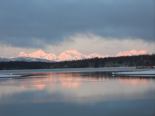 Gustavus seems to fit the mold for lost souls in search of reinventing themselves, seeking a chance to find out what they are capable of as individuals and members of a greater community. What serendipity to have found such a welcoming, peaceful community. I continue to question the realness of my life here – my cozy home, the smell of a fire burning in the wood stove, the beauty of the frozen winterscape around me, music and home cooked meals with friends and neighbors in the community of Gustavus. I have felt a fair amount of guilt over the warmth and beauty of life here, knowing my husband has taken on a life of uncertainty and nomadic wandering in my absence.