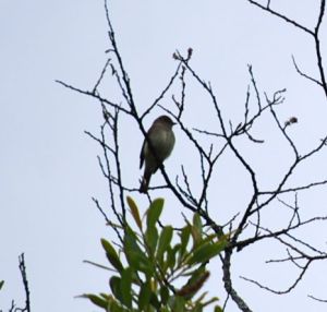 This morning’s bird was a Willow Flycatcher. I heard wind of its premier Gustavus debut from a fellow birder in town and went out in search of it the previous evening, but to no avail. Mr. Willow eluded birder marieke on the first attempt.