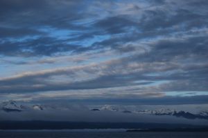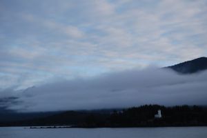 For me, the journey really begins now, as I head north up the Lynn Canal and prepare to set wheel and foot on foreign land, each mile taking me farther from familiar leaf and stone and closer to the unknown. I will travel through wilderness, on gravel and pavement, all of which will be revealed as a film through the glass. I may find names for mountains or lakes on a map, but I will have little connection to them. I will never know the inhabitants of this land, and I pass by as a shadow of a whisper in my tiny silver Toyota.