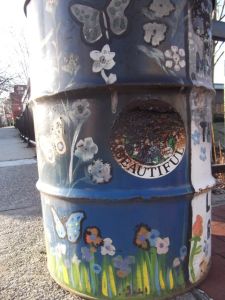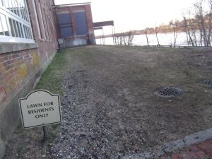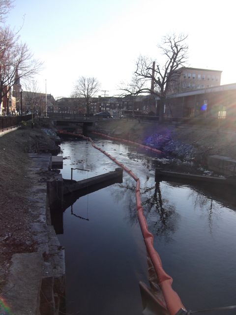A couple streets down from my oasis on Merrimack, there was an orange weir in the water that appeared to be collecting trash. I wonder if anyone comes and lifts it out of the water to dispose of the waste? I am doubtful, but here’s hoping. I wonder who or where I could even ask to find out? Perhaps, one can check out a large net at a library-inspired neighborhood clean-up facility?