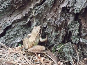 As I wound my way around a trail headed back toward the parking lot (my kind of parking lot, just a dirt and gravel strip), I shrieked and did some kind of shimmy aside as a tiny frog hopped in front of me.