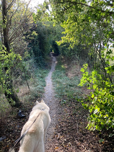 I noticed all that was lacking in our new life. No forest. One trail. No people and a feeling of spacious quiet. No people so no friendly neighbors to chat with or people to talk to about my “beau chien” along the trails in the forest. In two days, only one person told me, “il est beau.”