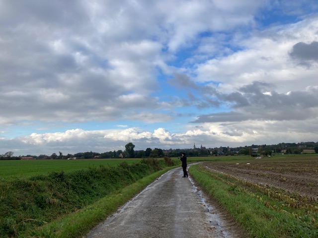 We carried on walking on very muddy roads. Note to self, always wear rain boots because New Balance Minimus sneakers are not up to the task in fall in a farming town, certainly not when it starts to rain in earnest. Mud below, rain above. Not the best combination for dry, happy feet. Even with wet, cold feet, the walk was wonderful. The area where live is quiet and bucolic, just the way I like it. After several years in Brussels, it is a welcome change. Even the relatively peaceful neighborhood where we lived in the southeast corner of Brussels felt cramped and swarming with humans to me. It is possible that all of my years living in rural wilderness areas, combined with a proclivity toward introversion, have ruined me for city living. All things considered, I don’t mind being ruined in this way.