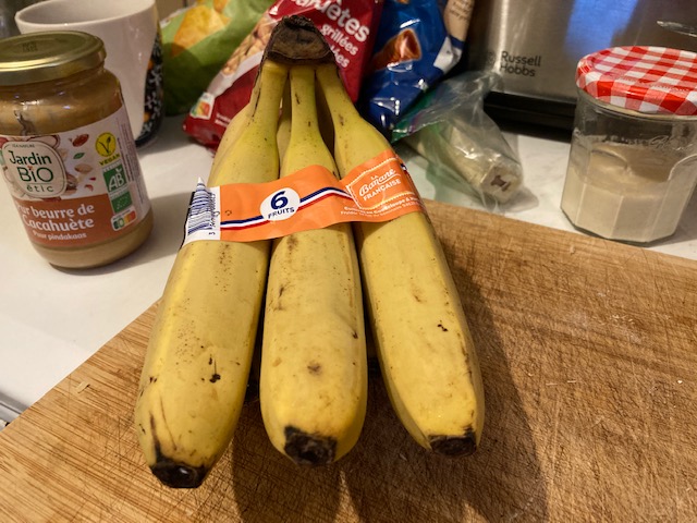 We do laugh fairly frequently at how very seriously the French seem to take themselves, at least those in the food industry. There are entire sections of the store for food made by hand in France. Everything made in France has little French flags. Even the bananas have a sticker wrapped around them with the red, white, and blue stripes. Products from other European countries can be found in the international aisle.
