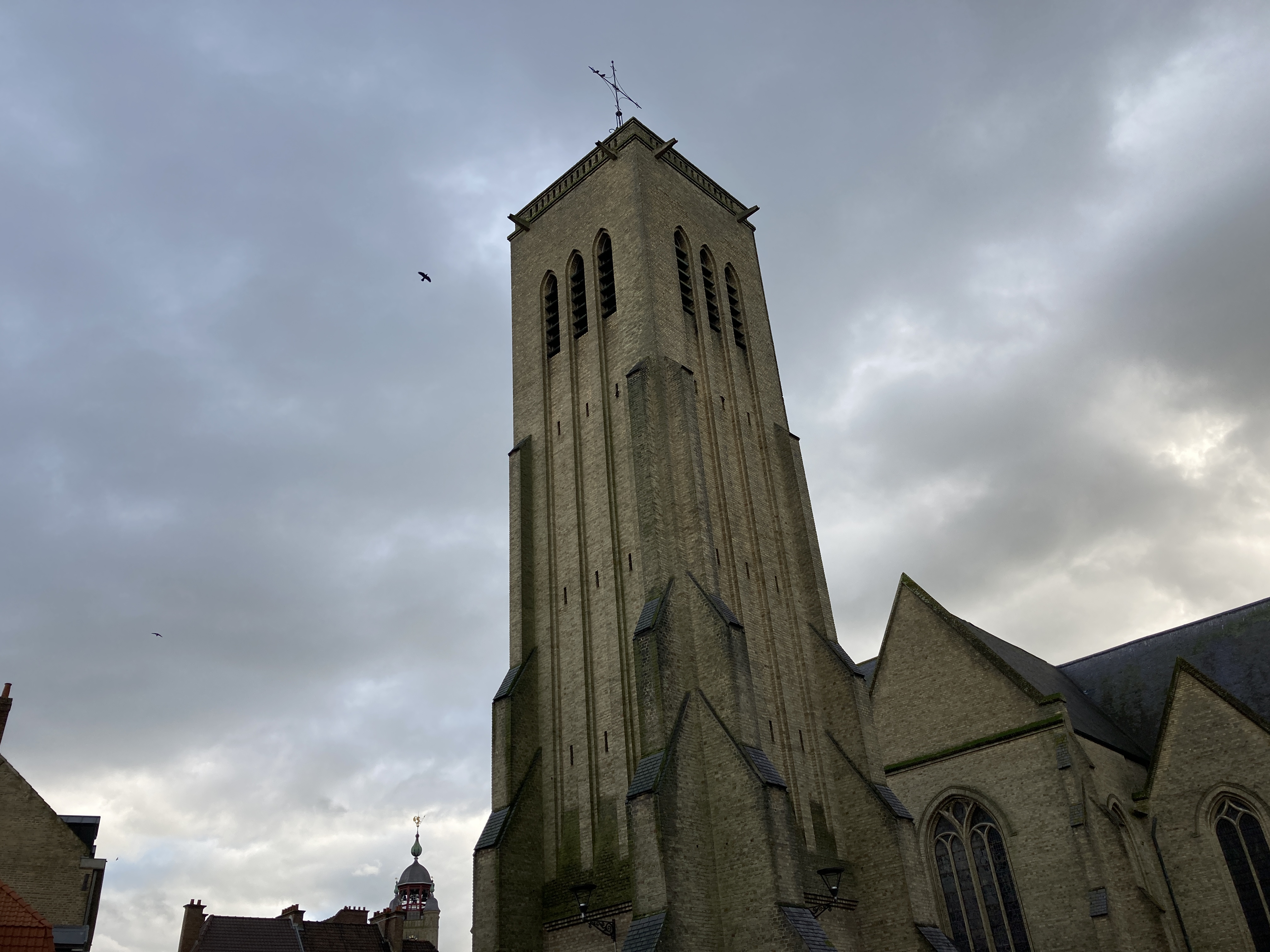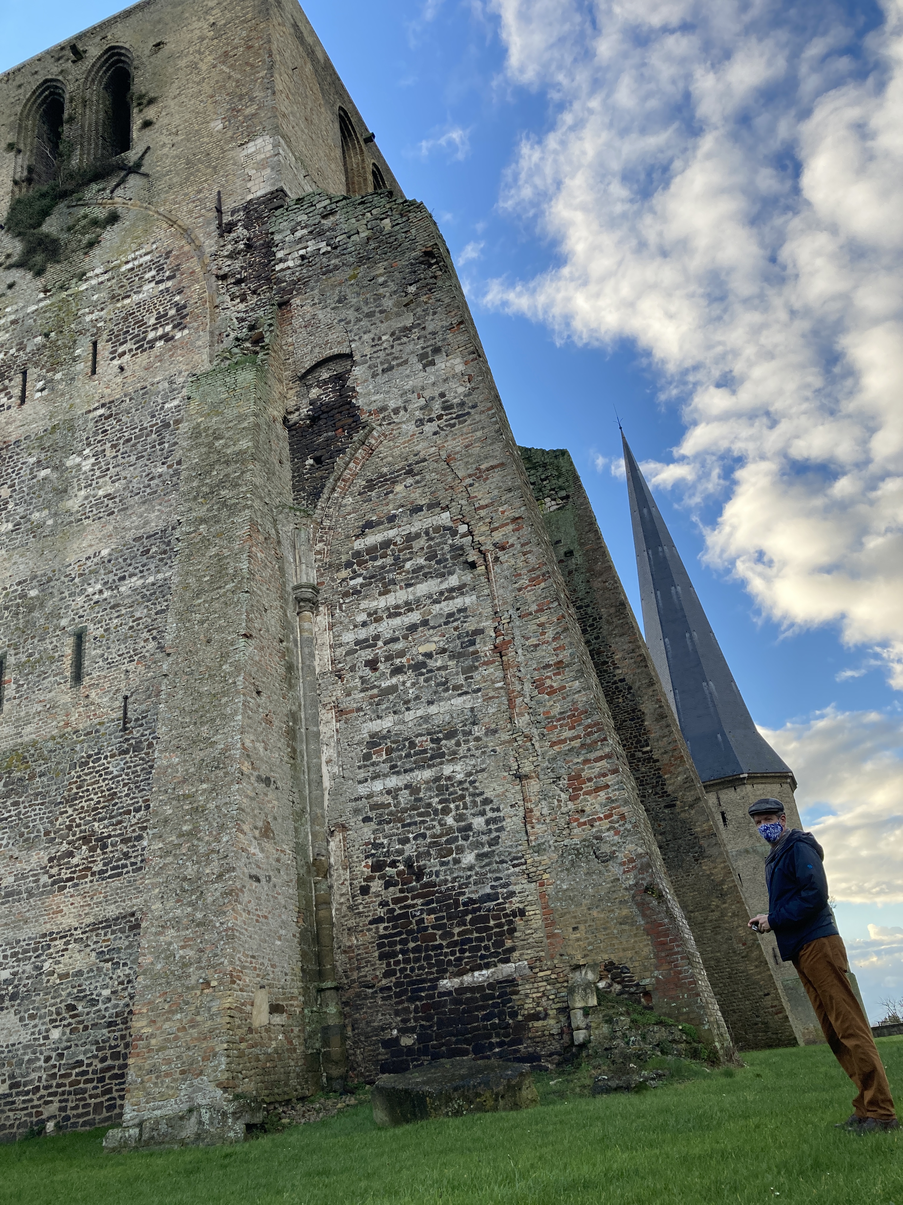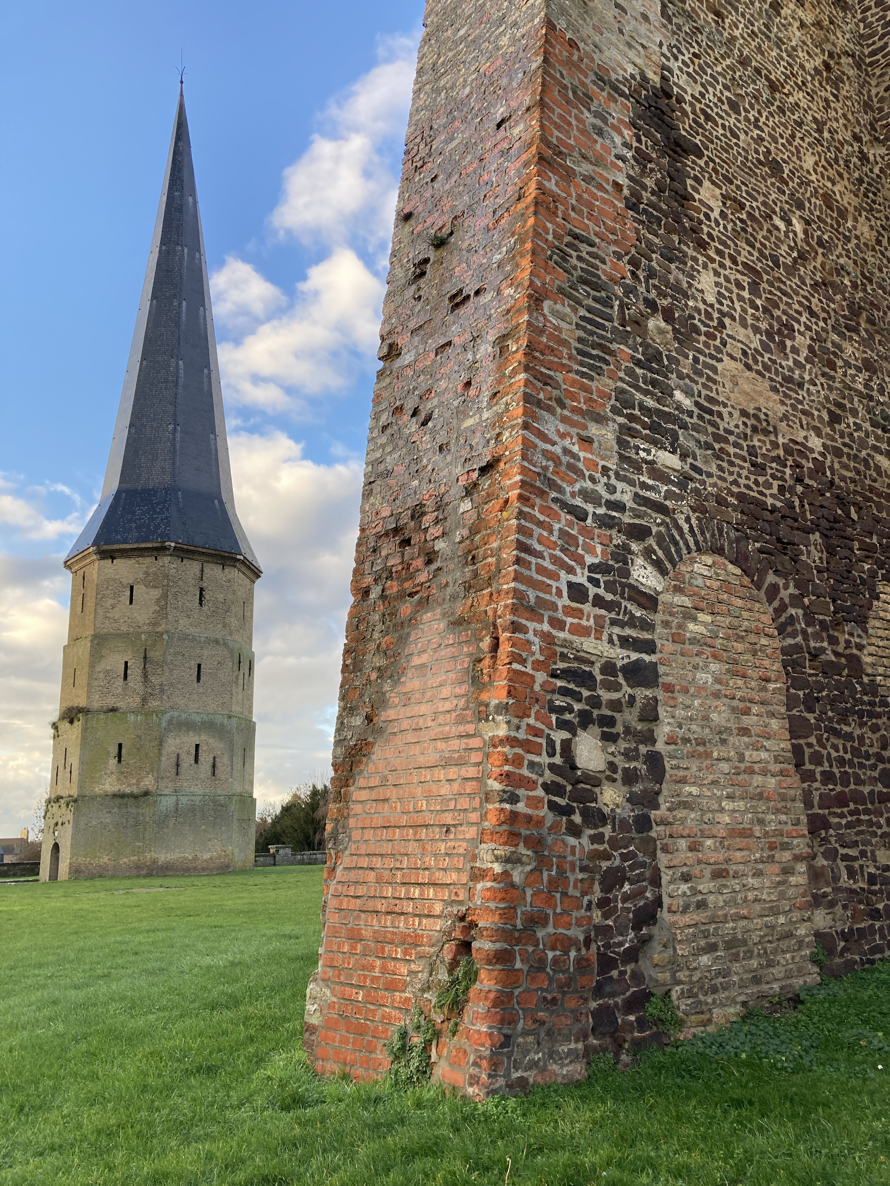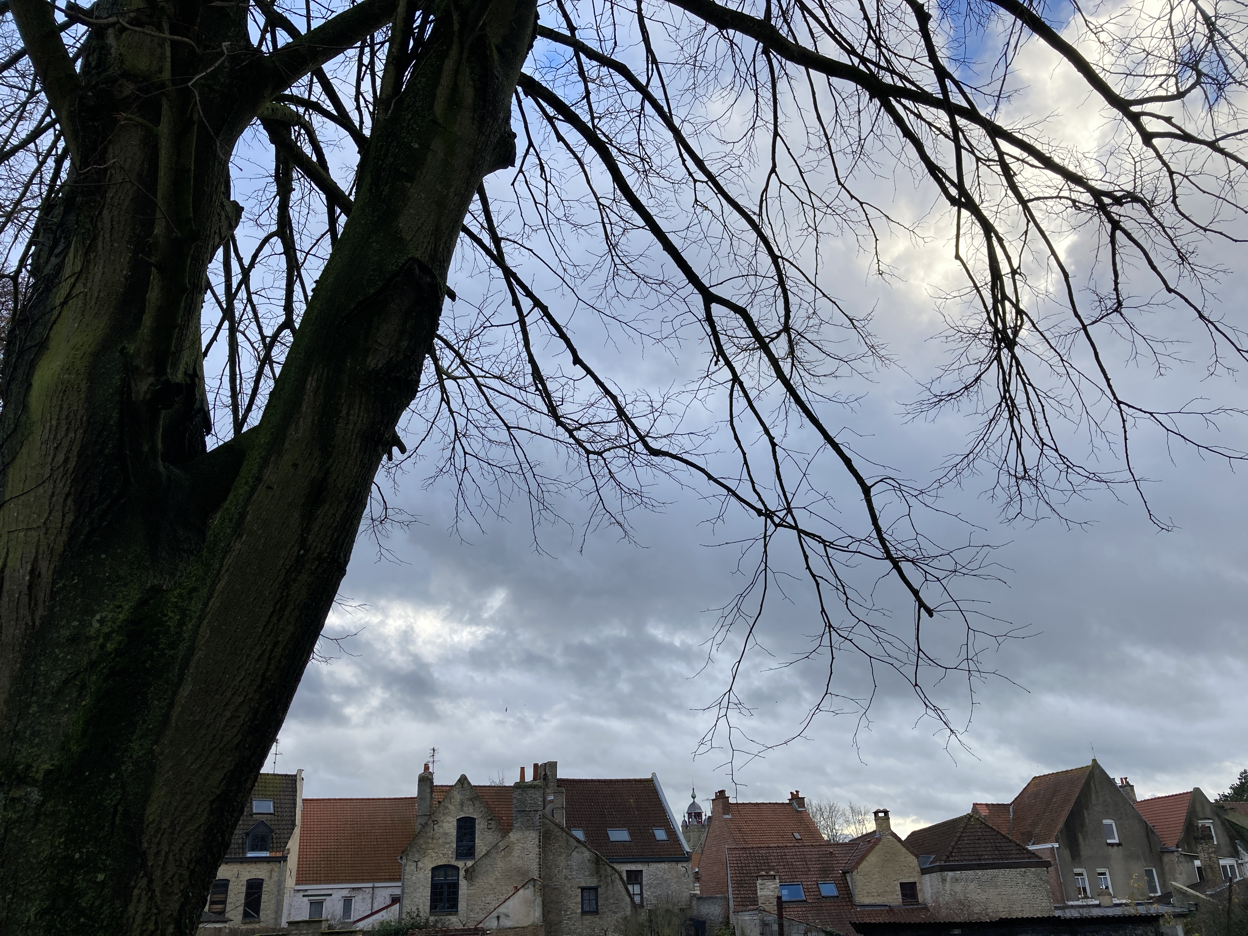 After finding it very easy to park and wander around the town, we decided it felt much more accessible and “do-able” than Brugges. Without the influx of expensive shops and restaurants, we were free to wander and enjoy the view. Old beautiful architecture, ancient churches, a moat surrounding the town were all within walking distance. Given that the confinement is ongoing, there were no restaurants open for a hot cup of tea or coffee and a snack, but we did find a patisserie called “Le Gros” (Fat one) with the best croissant I have yet eaten since moving to France mid-September. The title of the bakery did not fit the local fare, however. I have yet to see any truly obese people. There must be some element of control, which I seem to be missing, with all of these incredible pastries within our grasp at all times. Literally, there is a bakery near our house with a pastry and bread vending machine outside so that baked goods are available 24 hours a day/7 seven days a week.