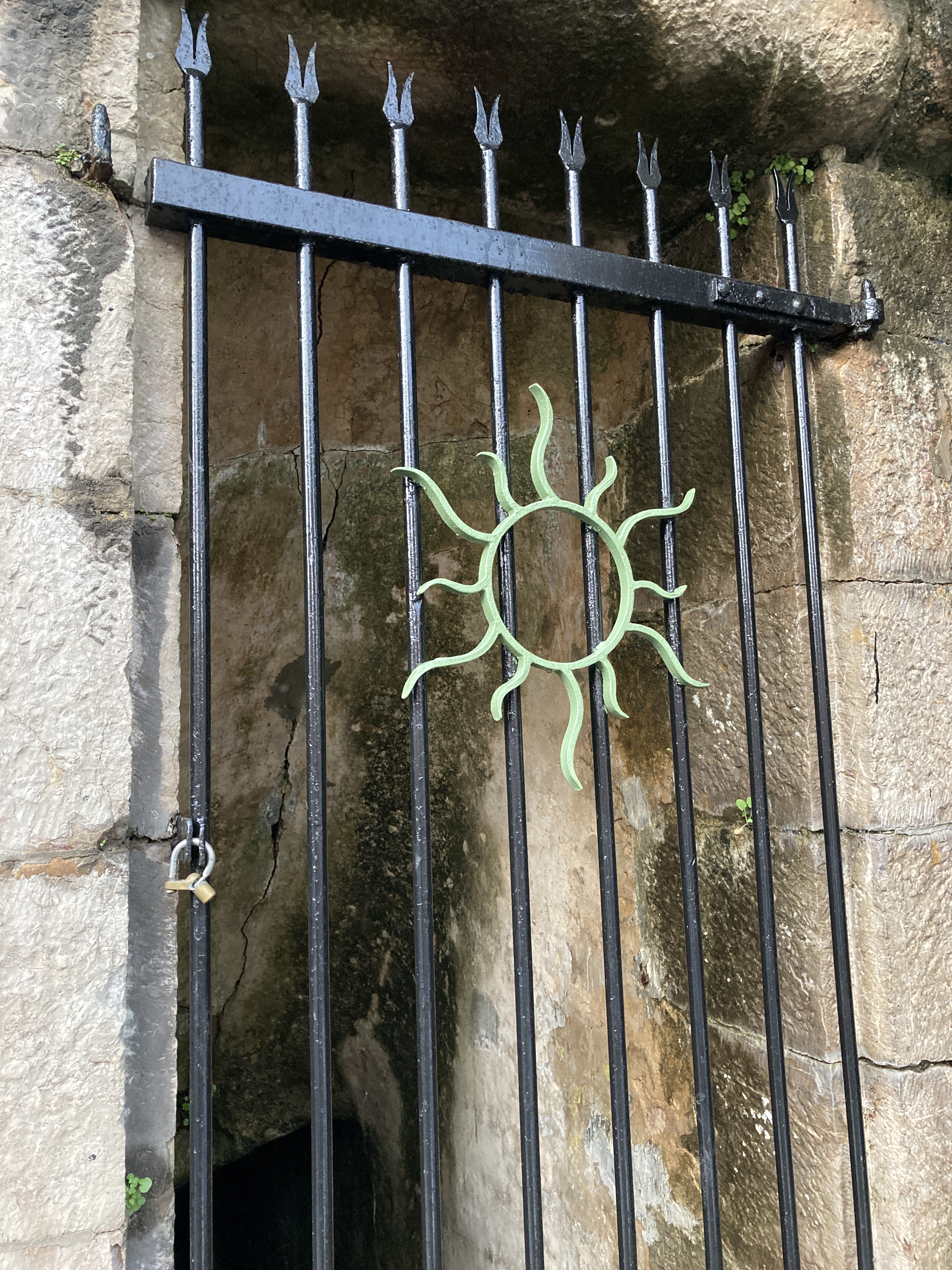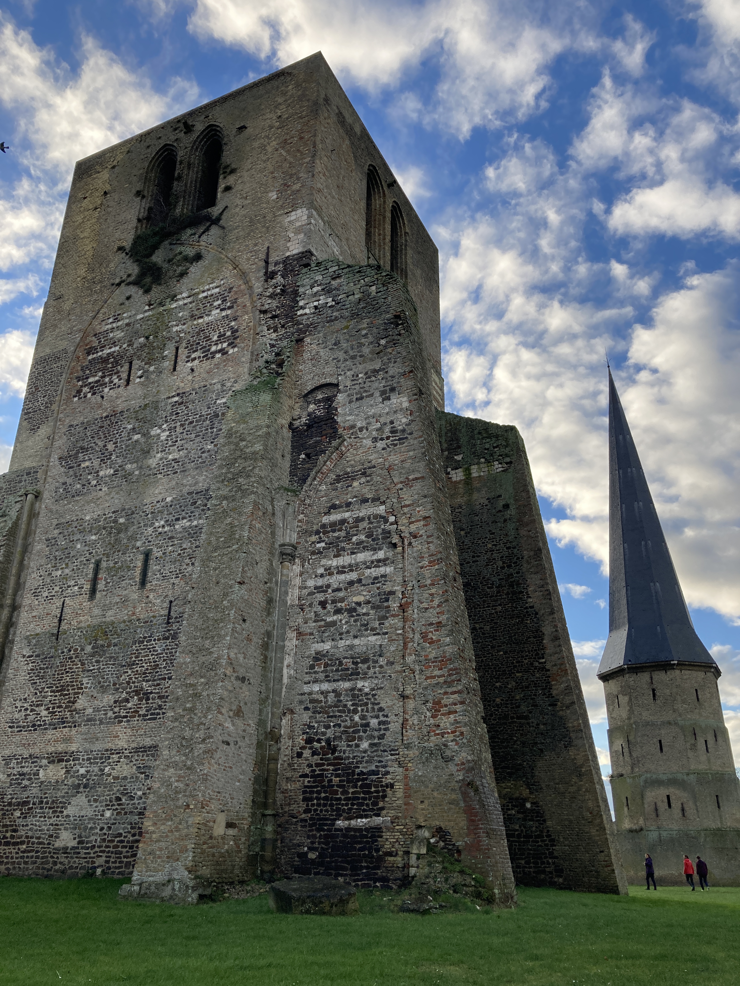We wandered around one ancient tower and toward the second, taking photos and commenting on the many layers of brick and stone. The light came in waves between bouts of cloud covering the sun. eventually, we walked down a path toward an archway, turning back to take still more photos in an attempt to capture this auspicious coming together of dark and light on stonework that could tell many stories if we had the ability to listen and understand.
