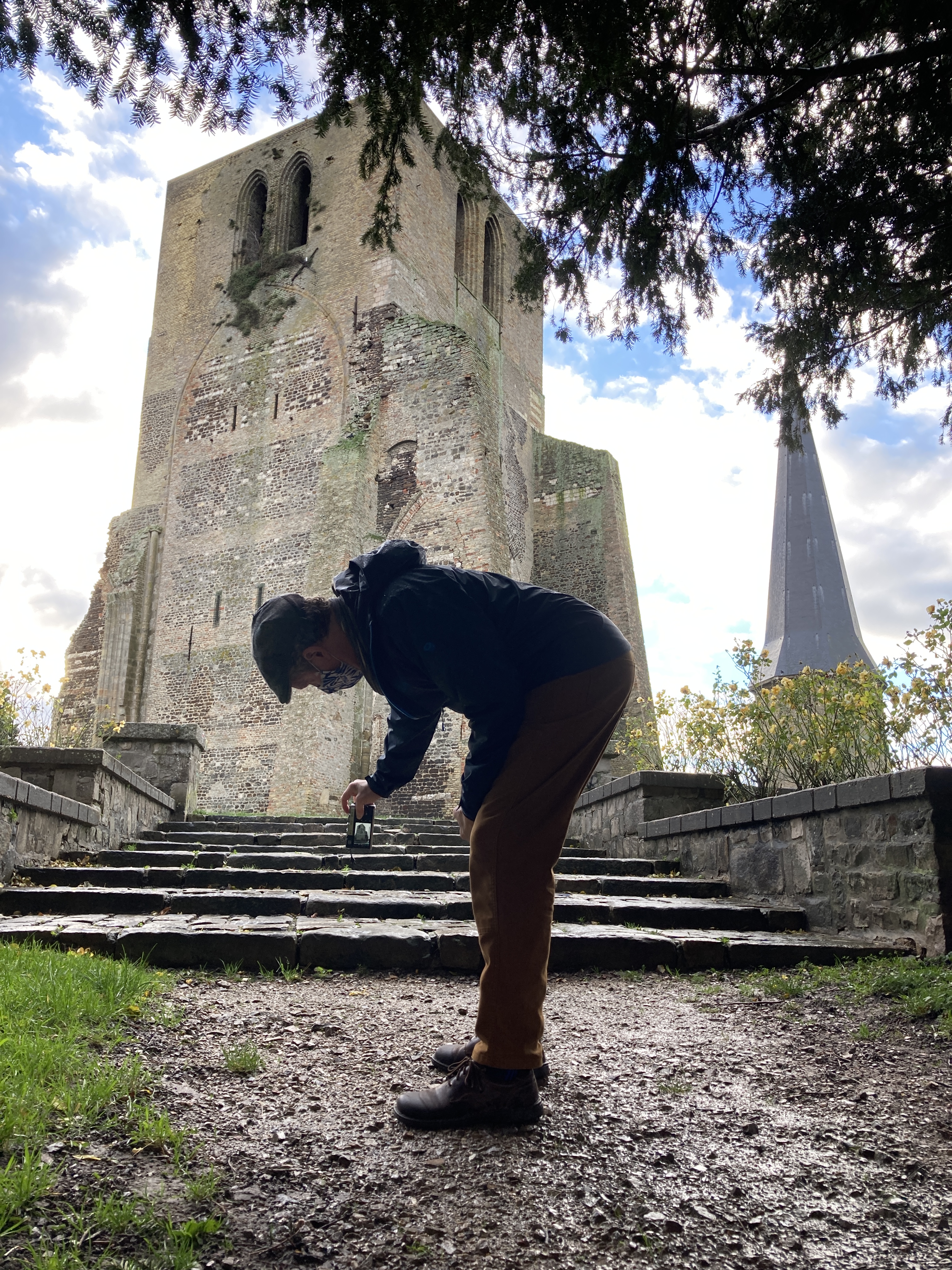 From every corner of the city, the central belltower appeared like a beacon with the haunting light that seems to only be present between bouts of pouring rain. Like a rare, warming gift after the soggy cold, which we relished. We walked along the rampart wall and around a neighborhood that seemed decidedly not at all medieval in its architectural design. We could see the pointed top of a building that looked a bit like it was wearing a gnome cap, and we were following a circuitous route to find it. Just as we were wondering if we should have taken a left instead of walking straight, we rounded a corner and saw two ancient structures beyond two ancient coniferous trees.