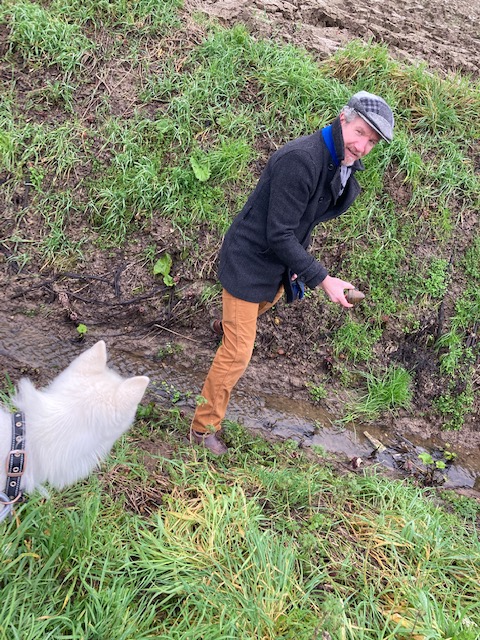 We speculated as to the vegetables that might be going into the ground next. We also began to go second-hand shopping in the ditches that ran alongside the farm fields. One day, we found what we thought might be an old pipe but could also be a World War I relic. We brought it home, and it sat on our terrace for months until a more recent visit to The British Grenadier Bookshop in Ypres revealed that it could actually be the remnant of a WWI bomb.