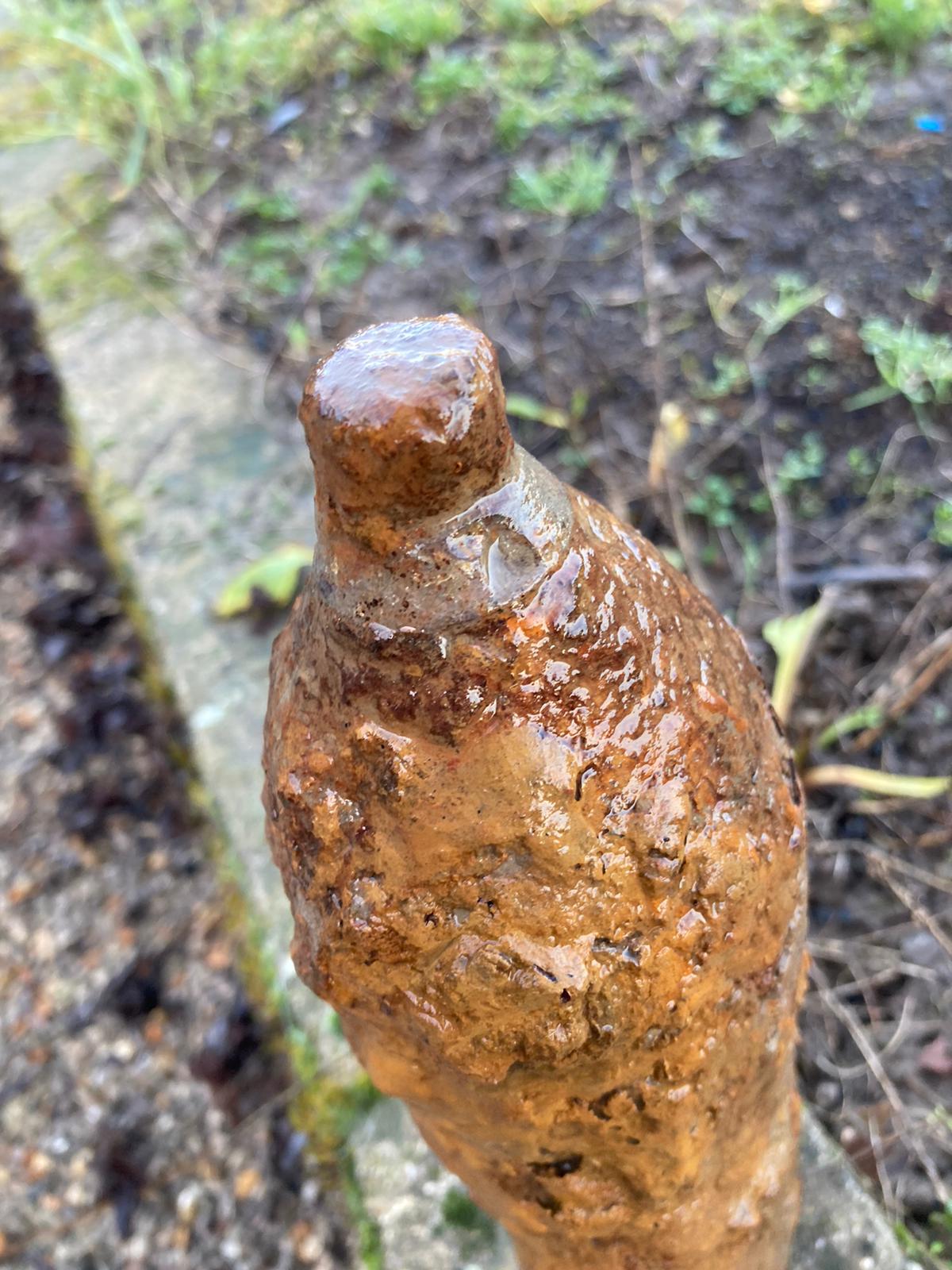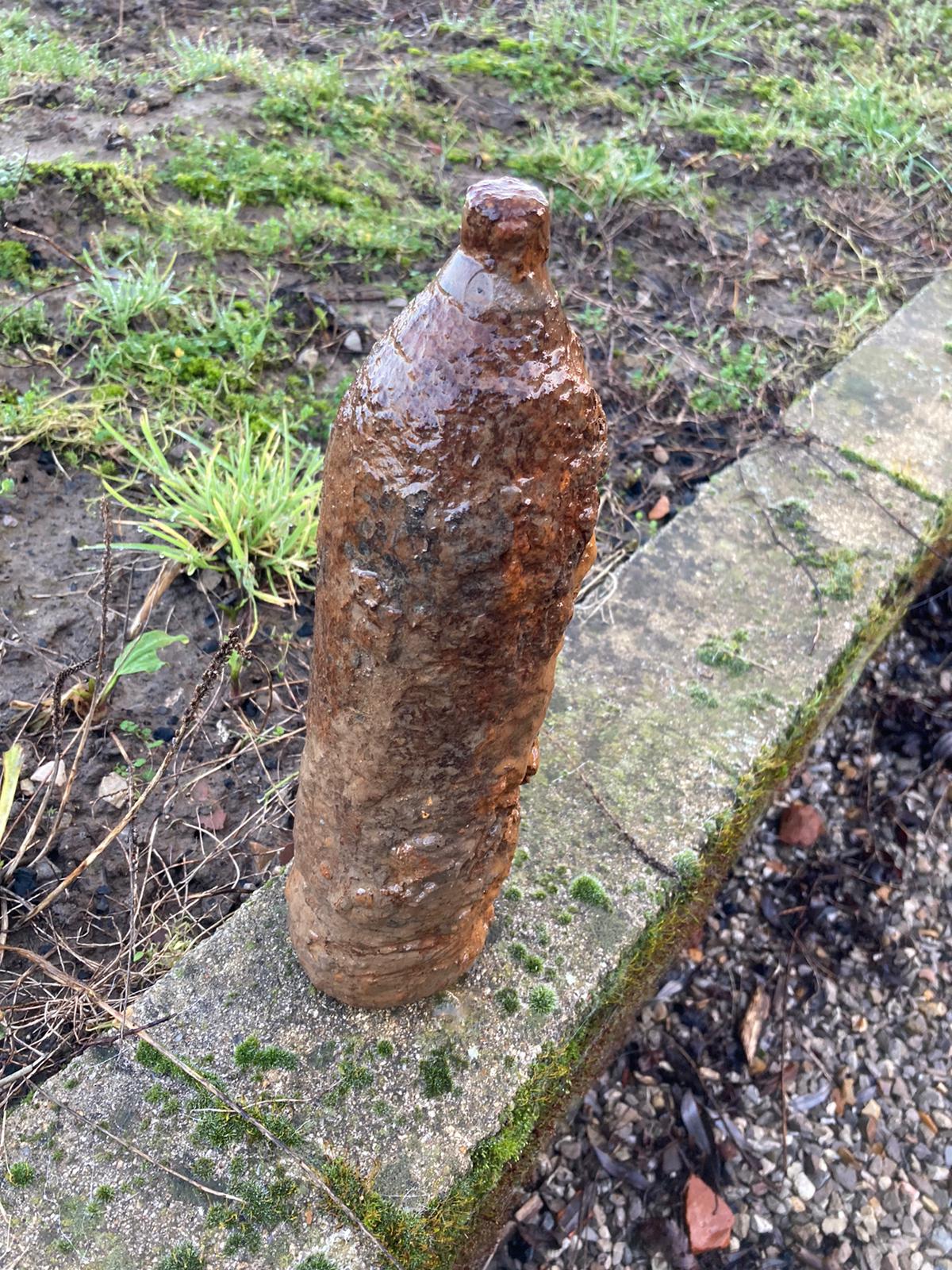 So there we were, me standing on the side of the road with the dog and my husband holding a potentially live explosive in his hand. What were we supposed to do this historic object? Did we set it back down for some other person to potentially pick up and blow themselves to bits? Did we bring it home? Did we stand there and call the police to come straight away? Given that it’s France and nothing happens fast here, we opted to bring it home.