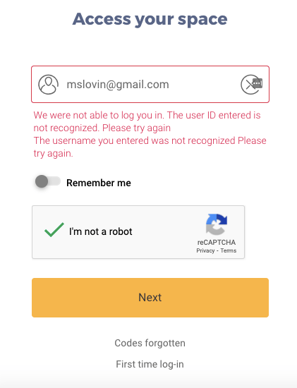 I went to the website and did not see any place to enter this login information. I saw a place to enter my email address. I inputted my email address and clicked on the box “I am not a robot.” The website responded that my email address was not recognized.