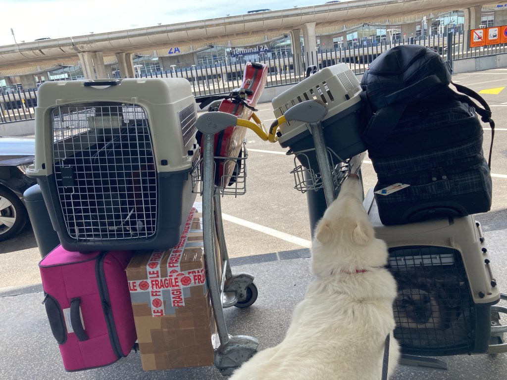 At this point in the journey, I was less stressed out about the animals than I was about the twenty somethings across the aisle from me who refused to wear face masks for the entire flight. The flight attendant would come by and ask them to put them back on, but the moment she left they took them off and began laughing and talking as if they were the only people on the plane and we were not in the middle of a deadly pandemic.